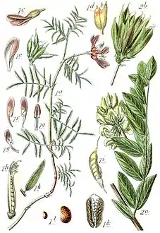 - Astragalus في قاموس نَهال لأسماء النباتات العلميَّة. نسخة محفوظة 10 ديسمبر 2017 على موقع واي باك مشين.