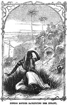 |CitationClass=تم تجاهله (مساعدة) - "Hindoo Mother Sacrificing her infant". The Wesleyan Juvenile Offering: A Miscellany of Missionary Information for Young Persons. X: 120. نوفمبر 1853. مؤرشف من الأصل في 1 أبريل 2019. اطلع عليه بتاريخ 29 فبراير 2016. الوسيط