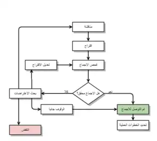 تعتمد المجموعات التي تصدر قرارات بالاجماع على خارطة طريق المبينة في الرسم المواجه.