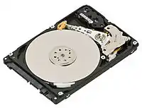 القرص الصلب (بالإنجليزية: Hard Disk أو (Hard Disk Drive (HDD أو Hard Drive أو Fixed Disk) [lower-alpha 2] هو وحدة أو جهاز تخزين بيانات رئيسي في الحاسوب، يستخدم لتخزين واسترجاع المعلومات الرقمية من وعلى أقراص سريعة الدوران (قرص سواقة الإسطوانة الصلبة [الإنجليزية])، وهو يتكون من أقراص ممغنطة تدور ويقوم لاقط كهرومغناطيسي بالقراءة والكتابة من وإلى السطح الممغنط.[2] من أهم الخصائص التي تميز كل قرص صلب عن آخر، سعة التخزين وسرعة الدوران.[3][4][5]