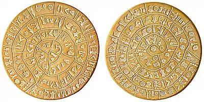 |CitationClass=تم تجاهله (مساعدة) - "معلومات عن قرص فستوس على موقع aleph.nkp.cz". aleph.nkp.cz. مؤرشف من الأصل في 15 ديسمبر 2019. الوسيط