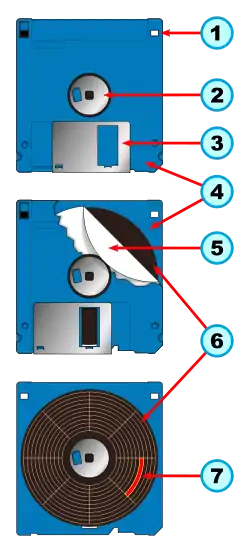 - مقطع الإقلاع (Boot) : وهو أول مقطع من المسار الأول (المسار رقم 0) من الوجه الأول، ويحتوي هذا المقطع على بيانات عن نوع الوسيط (ميديا)، رقمه التسلسلي، عدد المقاطع في المسار الواحد،