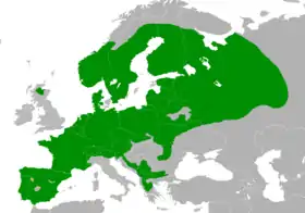 ![]() الانتشار الجغرافي العالمي للقرقف الأوروبي ذو العرف | |
