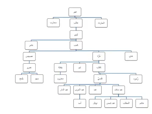 - بنو قصي بن كلاب بن مرة بن كعب بن لؤي، وهم ينقسمون إلى: