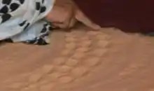 بعبارة أخرى يعرف عدد النقرات في كل سطر فإذا كان عددها يقبل القسمة على 2 يكتب نقرتين وإذا كان غير قابل للقسمة على اثنين يكتب نقرة واحدة. ولو فرضنا أنني قمت بعمل (استخراج للحرف) أنقر على الرمل كما يلي: