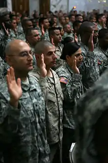 - "Oath of Allegiance for Naturalized Citizens". Citizenship and Immigration Services. uscis.gov. U.S. Department of Homeland Security. مؤرشف من الأصل في 6 أكتوبر 2020. اطلع عليه بتاريخ 30 يونيو 2010. الوسيط
