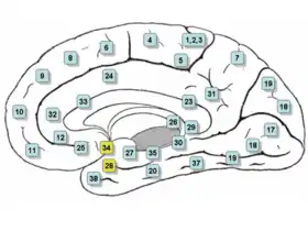 ![]() القشرة الشمية الداخلية ممثلة برقمي 28، 34 | |