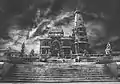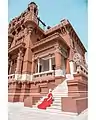 - «أن الواجهات كانت مغطاة بلون أبيض مع لون طوبي محروق مستوحى من معابد القرن الثاني عشر من شمال الهند» – Amelie D Arschot، Le roman D Heliopolis - Page 178