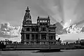 يقع القصر على مساحة 12.5 ألف متر. واستلهم تصميمه الخارجي من المعابد الهندوسية القديمة، وتصميمه الداخلي من فنون عصر النهضة الأوروبية، بطريقة تجعل الشمس لا تغيب عن حجراته وردهاته أبدًا.[20][6]