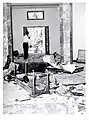 صورة لاحدى قاعات قصر الرحاب بعد ثورة 1958 ويظهر آثار الحريق فيها