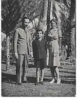الملك فيصل الثاني مع خاله عبد الإله ومربيته الإنجليزية وقد قتل الملك وخاله الوصي في قصر الرحاب