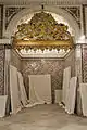 زخرفة منحوتة ومذهّبة، تملأ القوس النصف دائري لقبة إحدى الغرف.