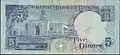صورة خلفية لخمسة دنانير كويتية من الإصدار الثالث يظهر فيها قصر السيف
