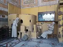 - قاعة الحماية: تُعرض فيها مشاهد من الحياة اليومية للعائلة الدمشقية، الجدة والكنائن.