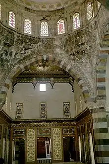 - أسعد باشا العظم في عام 1153 هجري - 1740 ميلادي ويدل على هذا التاريخ أبيات من الشعر المنقوش على جدران القاعة الكبرى (قاعة الذهب) نصه