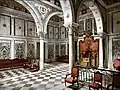 القاعة الأولى هي قاعة القبّة ويتخذ سقفها شكل قبّة من ستة عشر جانب، تقابل هذه القاعة الصالة الثانية التي تتخذ شكل صليب وتم زخرفتها على الطريقة التونسية.