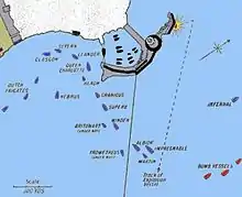 500 قتيل,[1] أربع فرقاطات و 5 طرادات أحرقت،ودمرت 33 الزوارق[2] | ||||||