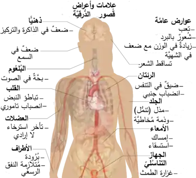 |CitationClass=تم تجاهله (مساعدة); تحقق من التاريخ في:|تاريخ=, |تاريخ أرشيف=(مساعدة) - American Thyroid Association (ATA) (2003). Hypothyroidism Booklet (PDF). صفحة 6. مؤرشف من "hypothyroidism" الأصل (PDF) في 20 مايو 2012. اطلع عليه بتاريخ أغسطس 2020. الوسيط