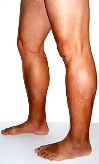 - ضعف عضلات الساق التي تعصر الأوردة لتدفع بالدم في اتجاه القلب[4]