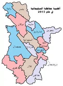 - The map of estimated population of Sulaimany governorate in districts level -2015, Kurdistan Region Statistics Office. Retrieved 25 October 2017. نسخة محفوظة 25 أكتوبر 2017 على موقع واي باك مشين.
