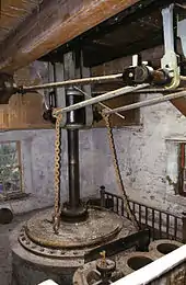 كباس وقضيبه ويعملان رأسيا في آلة كبيرة.