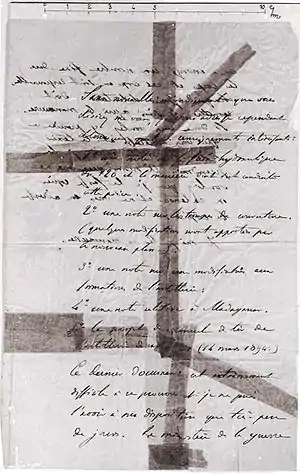 - Thomas, L'Affaire sans Dreyfus, p. 141. Hanotaux a fait promettre à Mercier d'abandonner les poursuites si d'autres preuves n'étaient pas trouvées. C'est sans doute l'origine du dossier secret.