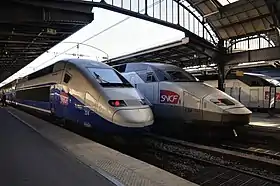 ![]() ثلاثة قطارات تيجيڤي في محطة الشرق في باريس | |
