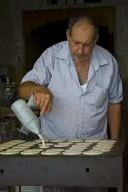 تحشى الأقراص ذات الحجم العادي عادة بالجبنة منزوعة الملح أو بالجوز المطحون مع سكر وقرفة، أو بالفستق الحلبي، وهناك حشوات أقل شهرة مثل الحلاوة مع الصنوبر المقلي أو الزبيب أو اللوز أو البندق أو الفول السوداني، ثم تطوى وتطبق أطرافها فتصبح نصف دائرية.