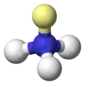 الإلكترونين الوحيدين يظهران باللون الأصفر في قمة تركيب رباعي الوجوه في الأمونيا