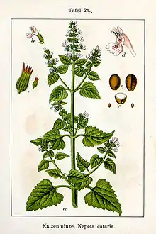 النبات عبارة عن عشبة معمرة يصل ارتفاعها إلى متر واحد. الورقة قلبية الشكل الزهرة بيضاء منقطة بلون أرجواني. تعرف علميا باسم Nepeta Cataria.