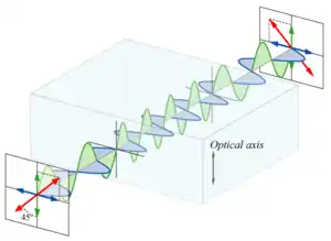 تغيير الإستقطاب يتعلل بأن الضوء المستقطب خطيا يمكن تقسيمه إلى جهتي استقطاب متعامدتين، واللتان تعبران البلورة بسرعة مختلفة، بمعنى أن هناك إزاحة زاوية تحدث بين الجزئين. القطعة البلورة تتكون عادة من بلورات ذوات طبيعة انكسار مزدوج ولها سمك وتوجيه معين. حاليا تمكن العلماء من الحصول على هذه النتيجة باستخدام رقائق تأخير.