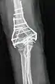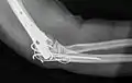تصوير شعاعي لمفصل الكوع الأيمن: قطع عظم.