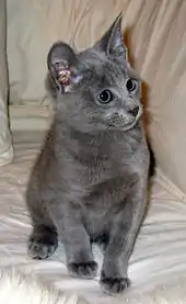 القط الروسي الأزرق (بالإنجليزية: Russian Blue) (بالروسية: Русская голубая кошка) (ويعرف بالقط الأجنبي) هو نوع أو سلالة من القطط التي يكسو فروها لونٌ فضيّ ممزوج بأزرق.[1][2][3] من المعروف عن هذه القطط أنها على درجة عالية من الذكاء، وتتمتع بروح مرحة، غير أن الخجل ينتابها عند لقائها بالغرباء. وعلاقتها ببني البشر في تطور مستمر، وهو الحيوان المفضل لدى الكثيرين لنعومة فروه ولطافة روحه.