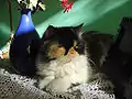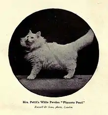 تم عرض القطط الفارسية ذات الفراء البيضاء المنقطة وصدفة السلحفاة في نهاية القرن التاسع عشر في معارض بالمملكة المتحدة: قط فارسي أبيض وأسود وذو فرو بشكل صدفة السلحفاة وأبيض.