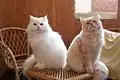 الفارسي الأبيض، ولد من تناسل الأنجورا التركية والفارسية الزرقاء، موجودة منذ القرن التاسع عشر، وقدم للمرة الأولى في معرض في لندن في عام 1903. لمنع صمم القطط البيضاء مع العيون الزرقاء، يجب أن تتناسا مع القطط قصيرة الشعر البريطانية للحصول على أعين صفراء أو أعين مختلفة اللون.