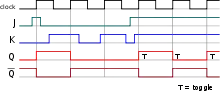 ملاحظة: الاختلاف بين دارة القلاب J-K ودارة القلاب S-R أن الخرجين Q،Q موصولان إلى الدخل مرة أخرى.[5][6][7]