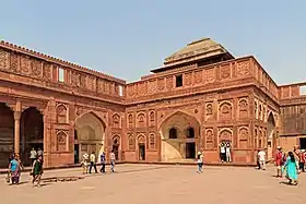 قلعة أغرا الحمراء تقع في الهند بمحاذاة حدائق تاج محل وهي نُصب بالغ الأهمية يعود للقرن المغولي السابع عشر. وهي قلعة قوية شيّدت من الحجر الرملي الأحمر تضمّ في حرمها البالغة مساحته 2.5 كيلومتر المدينة الملكية المكونة من العديد من القصور الخيالية كقصر جهانكير أو تاج محل الذي بناه شاه جهان وبصالات اجتماعاتها كالديوان الخاص، والمسجدين الرائعين[1]