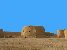 يقع في الجهة الشمالية شمالي سور المدينة ويعود تاريخه إلى الفترة من 100م – 1400 م مبنى على جدران تعود لفترة تايلوس، وهو على شكل مربع طول كل ضلع من أضلاعه 52 متراً وفي كل زاوية يوجد برج دائري وفي منتصف كل جدار برج على شكل نصف دائرة، ما عداً الجدار الغربي فإنه يتوسط برجان على شكل ربع دائرة. حيث يشكلان معاً المدخل الرئيسي وفي كل برج فتحات للرماية وتتوسطه فناء مربع وفيه أربعة ممرات تتعامد وتنفتح على الفناء وتوجد به مجموعة كثيرة من الغرف ومدبسة لتخزين واستخراج عصير التمور (الدبس).