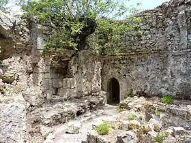 والبوابة الثانية تتجه صعودا باتجاه الغرب نحو البوابة الثالثة وعلى يمين الطريق نقشت آية الكرسي في العصر الإسلامي وعلى الجدار المواجه تظهر كتابة على أحد حجارته أيضا ذكر فيها بعض الآيات مع وضوح في ذكر التواريخ / ذو القعدة 761 هجري / أما البوابة الثالثة فقد تهدمت وضاعت معظم معالمها.