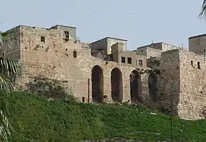- المدخل: ويقع في الجهة الجنوبية، بين برجي حماية، ويقود إلى بوابة ذات طراز عربي أيوبي في غاية الجمال، توصل إلى داخل القلعة عبر ممر ذي سقف معقود مبني من الحجر المنحوت.