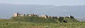 - الأسوار: تحيط بقمة المرتفع، ويبلغ قطرها الوسطي حوالي 300 متر، وهي مبنية من الحجر الكلسي المنحوت والضخم، وتتداخل الأسوار مع الأبراج بقوة وتترابط فيما بينها، وللقلعة تسعة عشر برجًا تتميز بضخامتها وقوة تحصيناتها، إلا أن أبراج الجهة الغربية، أقل عددًا وأصغر حجمًا حيث أن مرامي السهام المنتشرة على الأسوار تؤمن الحماية الكاملة من هذه الجهة مع المنحدر. أما سفوح التل، فهي شديدة الانحدار ومزودة بتصفيح حجري لتوفير الحماية المطلوبة للقلعة.