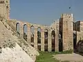 منظر جانبي لقلعة حلب مئذنة الجامع الكبير في القلعة •بوابة قاعة العرش •البرج الأيمن في سفح القلعة متحف القلعة •مسرح القلعة واجهة قلعة حلب | |