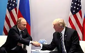 ![]() الرئيسان بوتين وترامب خلال قمة مجموعة العشرين هامبورغ 2017 | |