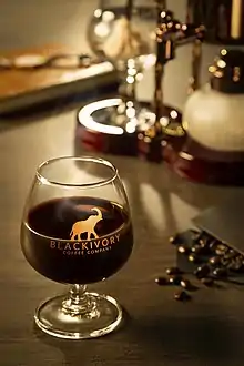 قهوة العاج الأسود هي العلامة التجارية من القهوة التي تنتجها شركة بلاك إفوري كوفي (Black Ivory Coffee) المحدودة في شمال تايلاند من حبوب البن ارابيكا التي تستهلكها الفيلة ويتم جمعها من فضلاتها.[1][2] يتأثر طعم قهوة العاج الأسود بالانزيمات الهاضمة للفيلة، حيث تكسر بروتين القهوة.[2] "يعتبر البروتين أحد العوامل الأساسية لمرارة القهوة. وكلما قل البروتين قلت المرارة". يتم هضم حبوب البن في غضون 15 إلى 70 ساعة، مع مكونات اخرى مختلف داخل بطون الفيلة، مما يضفي نكهة خاصة لهذا المنتج.[3] وعلى عكس قطط الزباد التي تاكل اللحوم، فإن الفيلة من الحيوانات العاشبة، والحيوانات العاشبة تستخدم التخمير للمساعدة في كسر السليلوز.