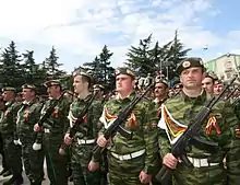 جنود أوسيتيا الجنوبية خلال إستعراض في تسخينفالي في مايو 2009.
