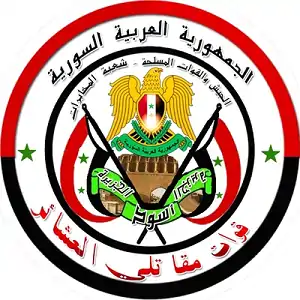 ![]() شعار الميليشيا. نص القمة كما يلي: "الجمهورية العربية السورية. الجيش والقوات المسلحة – شبعة المخابرات." القاع: "أسود الجزيرة. قوات مقاتلي العشائر." شعار الميليشيا. نص القمة كما يلي: "الجمهورية العربية السورية. الجيش والقوات المسلحة – شبعة المخابرات." القاع: "أسود الجزيرة. قوات مقاتلي العشائر." | |