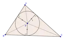 P مركز الدائرة الداخلية للمثلث