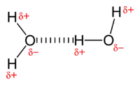 وهذا النوع من القوى هو الذي يفسّر الارتفاع الكبير في درجة غليان الماء مقارنةً بدرجات غليان المركبات الهيدروجينية لعناصر المجموعة السادسة أ . وهذه القوى الأربعة الأخيرة ( قوى الربط بين الجزيئات ) يطلق عليها بشكلٍ عام قوى فان درفال ( Van der Waals forces ) .[2]