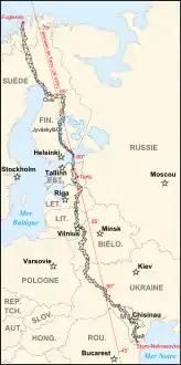 ![]() خريطة قوس ستروف الجيوديسي، النقاط الحمراء تبين مواقع التراث العالمي خريطة قوس ستروف الجيوديسي، النقاط الحمراء تبين مواقع التراث العالمي | |