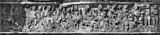 يُقارِن كيتزينجر دائِرة صَيد الأسَد لهادريان، الذّي لا يَزالُ راسخاً في تَقليد الفن الإغريقي الرَّاحِل، وَهُناكَ "وهم مَفتوح ومُتجدد الهَواء تَتَحرك فيه الأرقام بِحُرية وبِتأمين ذاتي مُريح" مع إفريز في وَقت لاحِق حيثُ يتم"الضَّغط على الأرقام المحاصرة، كَما كانَت بين طائِرتين خياليتين ومُعبأة بإحكام داخِل الإطار الذي يَفتقر إلى حُريَّة الحَرَكة في أي اتجاه"، مع "الإيماءات المُبالغة وغَير المُنسقة مع بقية الجسم".[3] في نقوش القرن الرابع، تَمَّ التَّخلص مِن الأرقام هندسياً في نمط "لا معنى له إلا فيما يتعلق بالمتفرج"، في المشهد (أدناه) يُرَكز على الإمبراطور الذي ينظر مباشرة خارجاً إلى المُشاهد. ويُتابع كيتزينجر: "ذهب أيضاً الكنسي الكلاسيكي في النِّسَب. رؤوس كَبيرة بشكل غير متناسب، جذوع مُربعة، السيقان الصغيرة ... إلخ "، إن الاختلافات في الحَجم المادي للأرقام تُبرز بِشكل جَذري الاختلافات في الرُّتبة والأهمية التي أشار إليها فنان القرن الثاني بالوَسائِل التَّركيبية الخَفيَّة في تجمع يبدو عرضياً.ذهب وأخيراً، إلى تفصيل التَّفاصيل والتَّمايز من نسيج السطح. حيث يتم قطع الوُجوه بدلاً من النمذجة، والشعر يأخذ شكل غطاء مع بعض الانقسامات السطحية، ويشار إلى الأقمِشة بِشكلٍ موجَز بوساطة خُطوط مَحفورة وعَميقة.[17]